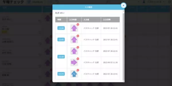 園児毎や当日の全体の入力・変更履歴を記録します。