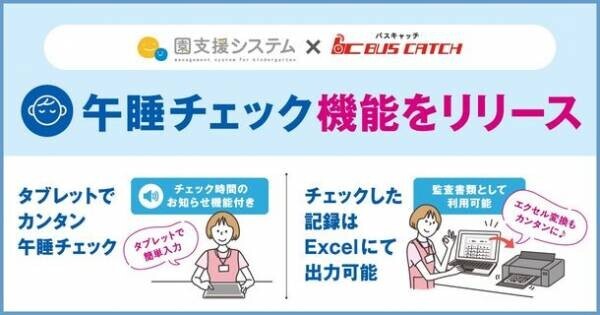 「午睡チェック」の負担を軽減するため、「園支援システム+バスキャッチ」は「秋の睡眠の日」である2022年9月3日(土)に、「午睡チェック機能」をリリースいたしました。