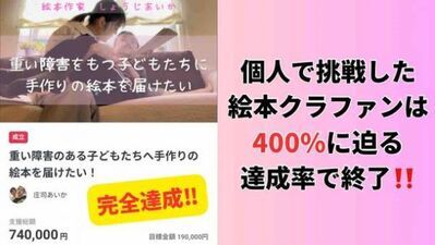 「自作絵本を障害児施設に配りたい」という夢のため2023年2月~3月に挑戦したクラウドファンディングは、400%に迫る達成率で成功をおさめました。4月より全国の施設へ絵本約2,000冊を配布していきます。