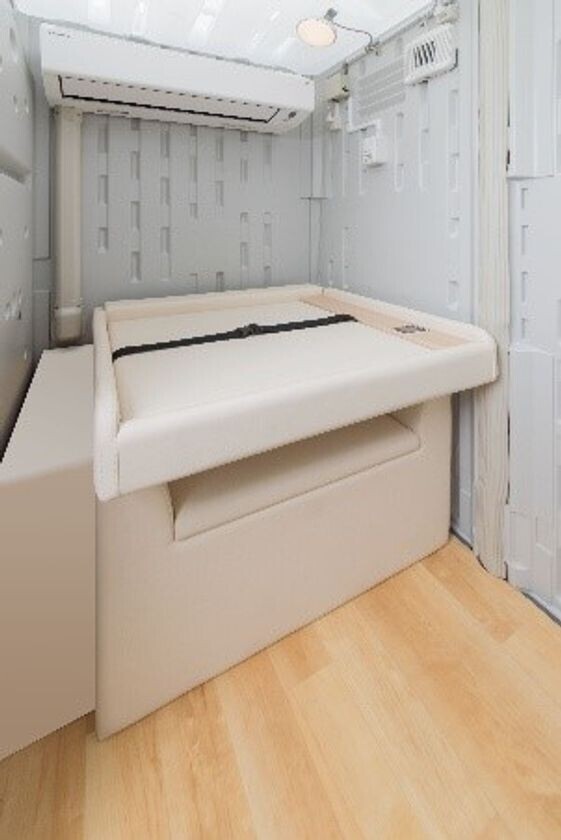 毎年のように話題となる猛暑は特に授乳やおむつ替えシーンにおいて大きな妨げとなります。mamaro solana(TM)には100V仕様のエアコンが装備されております。