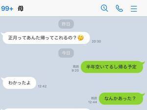 帰省の連絡をした子供 しかし、母親からの返信に「怖すぎて帰りたくない」