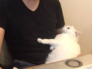 テレワーク中の夫に、猫が寄ってきて…? 続く展開に35万『いいね』!