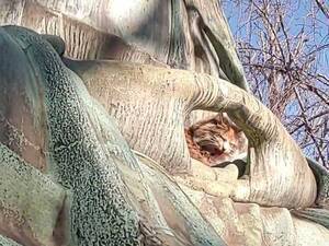 大仏様と猫 意外な組み合わせに「なんて素敵な光景」