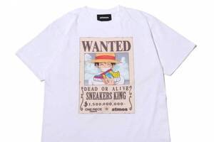 アニメ「ワンピース」×アトモス、スニーカーを持ったルフィの手記書Tシャツ