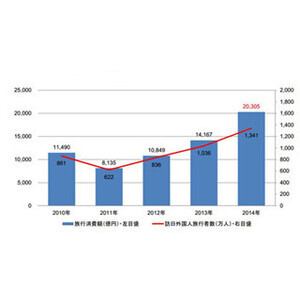 訪日外国人旅行消費の総額、過去最高の2兆305億円へ - 中国が対前年2倍に
