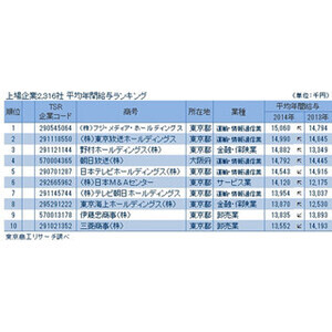 上場企業の年収ランキング1位、フジ・メディアHDは平均1,506万円