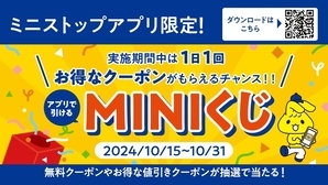 ミニストップアプリ会員さま限定新企画!! お得なクーポンがもらえるチャンス!! 期間中、1日1回引いて楽しい「MINIくじ」 10月15日(火)〜10月31日(木)実施