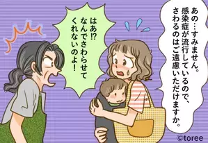 【赤ちゃんに触らないで…!】買い物中、“我が子に触りたがる”謎の女性が!?断った直後…⇒逆ギレ女性の“身勝手すぎる”言い分に絶句…