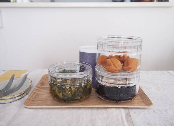 ご飯のおともや作り置きおかずも、常温保存の出汁パックや昆布の収納にもおすすめ。