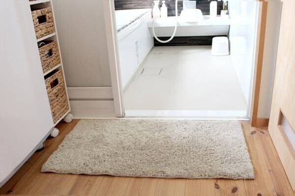 うちの家族はお風呂に入る時間がバラバラで、バスマットが生乾きになりがち。そしてサニタリーの無垢材の床は、マットが濡れたままだとカビや腐食に直結します。