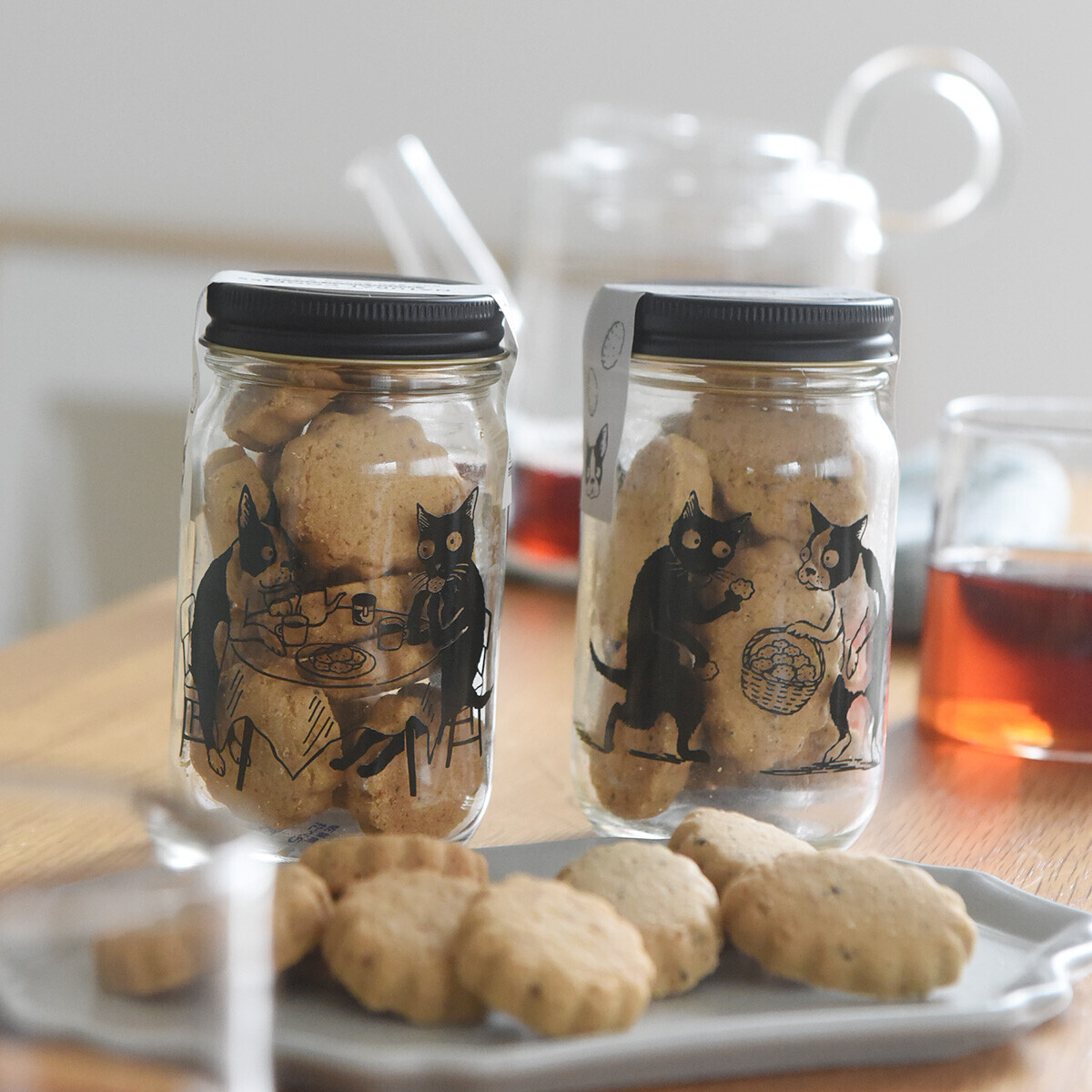 さて、この2匹の関係は?どちらも名前はあるのでしょうか・・・?そんなことも気になってくる目を引くパッケージのクッキー瓶が到着です。