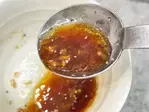 そして1位は「コクのごま」です。皿に少し出してみると、トロッとしています。ごまのほかにみそ、チキンエキス、オニオンエキス、ガーリックエキス、椎茸粉末などたくさんのうまみ成分が配合されています。