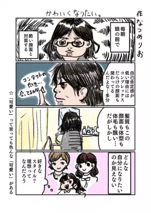 日々の出来事や推し活のこと、感じたモヤモヤについての漫画を描いている、なつめりおさん。彼女は自身の容姿にコンプレックスを抱いていました。ずっと「かわいくなりたい」という気持ちはあるけれど、その方向性は模索中で……?