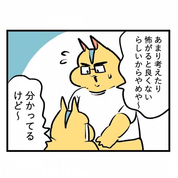 あまり考えたり怖がったりするのはよくない、と夫から言われたもしゃもぅさんは、再びセルフ除霊をして元気を取り戻すのでした。