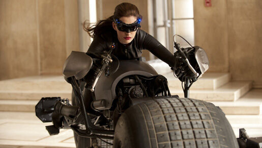 キャットウーマンといえば、過去の「バットマン」映画でも幾度となく登場。ティム・バートン監督による『バットマン・リターンズ』(’92)では、ミシェル・ファイファーがセクシーなコスチュームに身を包んだ。原作コミックでも猫をモチーフにした印象的なコスチュームで描かれているが、今回のアン・ハサウェイの衣裳はかなり洗練されたデザインになっている。サングラスをかけてバット・ポットにまたがり、髪をなびかせる姿はクール!