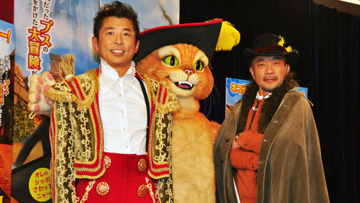 『シュレック』シリーズ随一の人気者“長ぐつをはいたネコ”ことプス(竹中さん)がシュレックと出会う以前を描いた本作。無実の罪を着せられ、育った町を後にしたプスが兄弟分の卵のハンプティ・ダンプティ(勝俣さん)と共に、伝説の金の卵を手に入れるため冒険を繰り広げる。