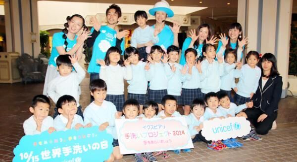 “世界手洗いの日”は、ユニセフをはじめ、国際機関や大学・企業など13の組織で構成する“せっけんを使った手洗いのための官民のパートナーシップ”が、国際衛生年であった2008年、10月15日を“世界手洗いの日”に制定。せっけんを使った手洗いの普及でセーブする命は世界で約100万人と言われ、毎年10月15日の“世界手洗いの日”にあわせ、世界100か国以上で、2億人以上の子どもたちに“正しい手洗い”を普及するため、さまざまなイベントを開催しているという。この日はイクスピアアリがある舞浜だけでなく、鹿児島、横浜、香川で“世界手洗いダンス”を同時に開催。舞浜ではダンサーの森山さんと園児たちが元気よく“世界手洗いダンス”を踊って、楽しく正しい手洗い方法を勉強した。