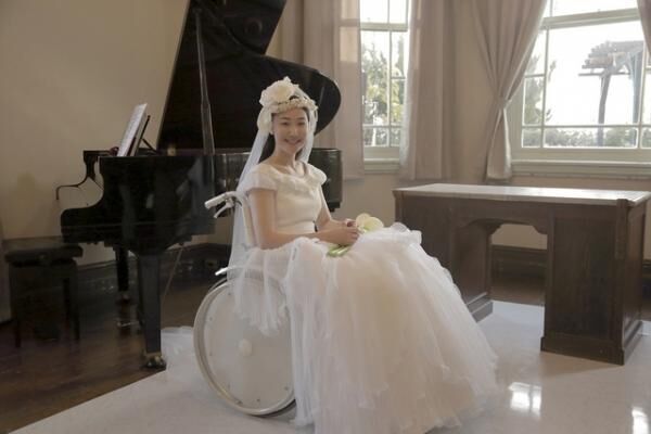 物語の後半には、藤井との出会いをきっかけに市江が初めて手掛けたオリジナルのウェディングドレスを着用するシーンがあり、今回届いたのは、その際の場面写真。これまで多くの作品に出演してきた黒木さんだが、ウェディングドレスを着用するのは、実は本作が初めて。