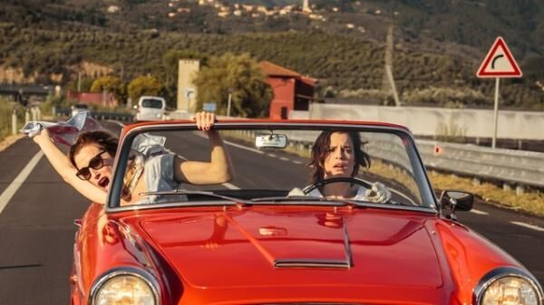 真っ赤な車に乗り込んだ2人の姿は、さながらイタリア版『テルマ&ルイーズ』。そんな彼女たちの旅を、まずはここから確かめてみて。
