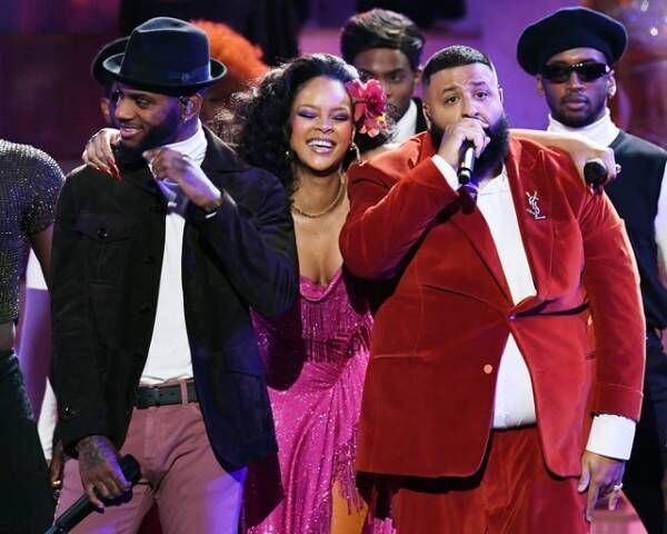 リアーナはグラミー賞授賞式でDJキャレド、ブライソン・ティラーとの共演パフォーマンスで「Wild Thoughts」を歌い、そこまで激しくないとはいえダンスも披露。衣装はキャミソールドレスで、腹部に妊娠が明らかだと断言できるほどのふくらみはなかった。
