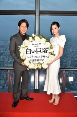 イベントが行われたのは、放送までついに2日と迫った5月20日。主人公・財前五郎を演じる岡田さんは黒いスーツで、財前の愛人で一番の理解者でもある花森ケイ子を演じる沢尻さんは美しい白いドレスで登場すると、「今日は、あさってから始まる『白い巨塔』のイベントでここに来れて嬉しいです。皆さんと一緒に過ごせるひとときを、お時間が許す限り楽しみましょう」(岡田さん)、「今日は『白い巨塔』カラーのドレスにしてみました。みなさん最後まで楽しんでいってください」(沢尻さん)とそれぞれ挨拶。