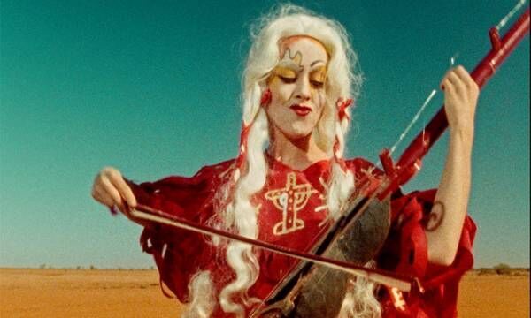この度解禁となった場面写真は、奇抜な衣装に身を包んだベティを捉えたシーンの数々。白いワンピースに身を包み、荒野の真ん中で楽器を奏でる穏やかな表情や、暗闇の中でランプに照らされた怪しげな顔には、真っ黒なアイメイクが施されている。恐ろしくも美しく七変化するベティのヘアメイクや衣装は必見。