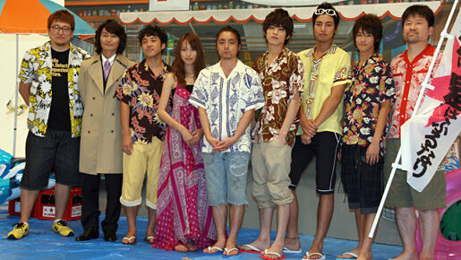 カッチリスーツ姿の安田さんを除いて、劇中と同じアロハシャツに短パン、ビーチサンダルという夏らしい出で立ちで登場した一同。男だらけの所帯ならではの打ち解けた様子で、開始早々から笑いが絶えない。撮影は1年前に行われたが、山田さんによれば、「男が集まったときにするような会話で盛り上がってました」とのこと。その内容は明かせないようだが、最年長の佐藤さんが「男ばっかりなので修学旅行みたいで、ほとんど下ネタでした。下ネタ・下ネタ・下ネタ・芝居の話…くらいの割合で」と明かした。