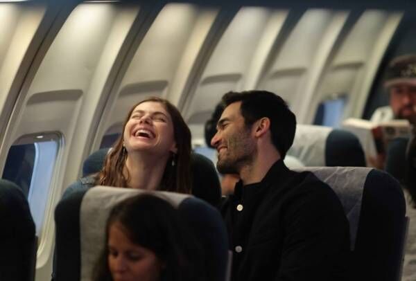 今回解禁された場面写真は、飛行機で楽しそうに笑うエマとジャック、そしてニヤリとした表情のジャックと固まった表情のエマを切り取った対照的な2点が届いた。過去のシンデレラストーリーとは全く違う、駆け引きというドレスを脱いで、心のメイクを落とし、本音で恋する新時代のラブストーリーに期待が高まる。
