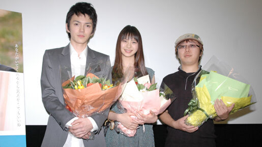 では、監督の印象はというと山下さんはなぜか「監督はお地蔵さんです!」と言う。監督自らの説明によると「道往く人たちが交わる場にいて、そういう人たちがおにぎりを置いていったりしてくれるような存在という意味らしい…」とのこと。林さんは「何でこの寒い中、監督が半袖なのかわからない」とポツリ。監督はこれに対し「着るものがなくて…」と、なぜかかなり弱気な受け答えで、この2人のやり取りに会場は笑いに包まれていた。