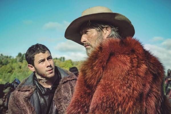 そして、プレンティスタウンを牛耳り、唯一ノイズをコントロールできる謎の男プレンティス(マッツ・ミケルセン)は、テンガロンハットに高級感溢れる毛皮コートを纏い、頬には戦争での死闘を仄めかす大きな十字傷が浮かんでいる。傍らには「ジョナス・ブラザーズ」のリードボーカルとして知られるニック・ジョナスの姿も。