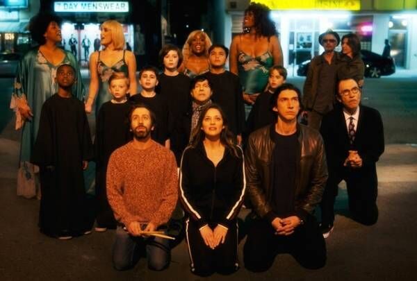 この度解禁された場面写真では、本作の原案と音楽を務めたバンド「スパークス」やレオス・カラックス監督とその娘らとともに、出演キャストたちが勢揃い。まるで舞台のオープニング挨拶かのように一斉にひざまづく不思議なシーンや、スタンダップコメディアンのヘンリー(アダム・ドライバー)と、国際的に有名なオペラ歌手アン(マリオン・コティヤール)の仲睦まじい様子、そこから一転、大海の嵐の中で言い争うようにふたりが絡み合う姿などを捉えており、いずれもカラックスの類稀なる映像美とその魅力を最大限に切り取ったものとなっている。