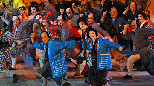 衣装を人気スタイリスト・伊賀大介、道具幕デザインをしりあがり寿が担当するなど各界の才能が歌舞伎座に集結!流行りのネタからヒップホップまでも加え、歌舞伎に新しい息吹を吹き込んだ。