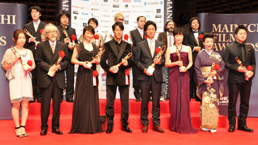『キャタピラー』で女優主演賞を受賞した寺島しのぶは、本作の若松孝二監督を引き合いに「監督のような激動の人生を送れるかは分かりませんが、情熱は持ち続けたい」と力を込めた。そして『孤高のメス』で男優主演賞に輝いた堤真一は「こうした場にいると、日本映画の諸先輩方の思いがあって、自分はその上に立たせてもらっているんだということを改めて感じます。今後、もっと深く、愛情を持って、そして自分を磨いて映画に関わっていきたい」と真摯な表情で語り、会場の喝采を浴びた。そして、稲垣さん同様に「毎日新聞、良い新聞」と付け加え、再び会場は笑いに包まれた。