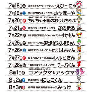 ただし、ゆるキャラの体調などの理由により、スケジュールは変更となる可能性がある。