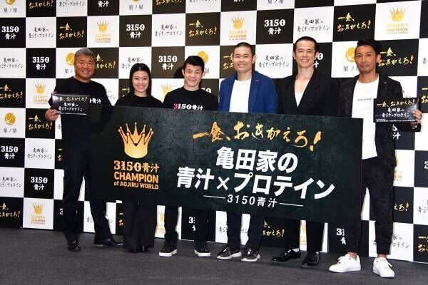 株式会社星ノ屋は、この日から亀田史郎氏が全面監修した青汁『亀田家の青汁×プロテイン』の発売をスタート。亀田史郎氏は「亀田家が世界チャンピオンになったのは、青汁があったから。色んなものを入れて考えましたよ。色んな勉強をしてプロテインも入れたし、究極の青汁ができました。青汁界の世界チャンピオンと言っちゃいます」とアピールした。