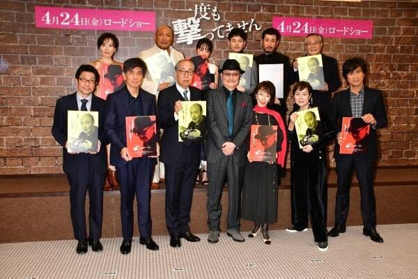 4月24日公開の映画『一度も撃ってません』の完成報告会が9日、都内で行われ、石橋蓮司、大楠道代、岸部一徳、桃井かおり 佐藤浩市、江口洋介、妻夫木聡、新崎人生、井上真央、 渋川清彦、前田亜季、小野武彦、阪本順治監督が出席した。