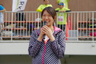 妊娠7カ月になるという浅尾美和さんは、ドット柄のゆったりしたスポーツウェアで登場。リレーマラソンのスターターの役目に「緊張しています。(スターターピストルを)早めに鳴らしてしまったり、不発になったりしないようにしなきゃ」と少々プレッシャーを感じている様子だったが、「今日はいい天気でスポーツ日和。無理せず、楽しく笑顔で走っているみなさんを見たいなと思います」と、にこやかに選手らに声をかけた。