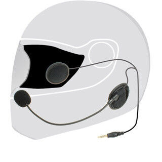 接着テープの付いたマジックテープで、ヘルメットの内側にスピーカーを固定する。マイクのアームはフレキシブルな調整が可能で、ジェットやフルフェイスなど、ヘルメットのタイプを問わずに利用できる。
