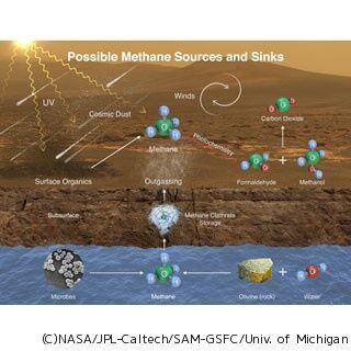 NASAが20カ月にわたって大気を調査したところ、一時的なメタンの増加を複数回検知した。研究グループによると「現地に何かしらの発生源があると思われる」という。メタンは微生物が発生させることで知られるが、現時点で発生源の特定には至っておらず、水と岩石の相互作用など、さまざまな可能性がある。