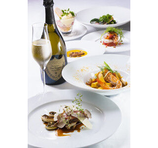 同店で期間限定で提供する「クリスマス・ディナーコース」は、ドン・ペリニヨン(グラス1杯付き)での乾杯からスタート。タラバガニや生ウ二を使用したサラダ、天使のエビ・カラスミを用いたパスタ「パッパルデレ」、寒鰆(さわら)のバターソテー、フォアグラを添えたポタージュ、和牛サーロインのビステッカ(ステーキ)など、全6皿の料理を提供する。