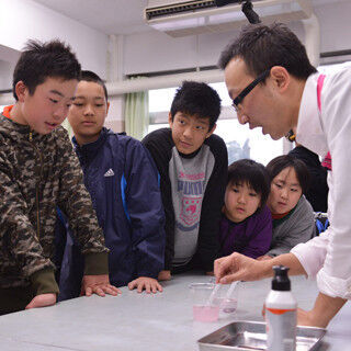 ナノ洗浄の効果に驚いたようだ。その後、子どもたちも各グループに分かれて同じ実験を実際に自分たちの手で体験し、初めて見る「ナノの世界」を楽しんだ。