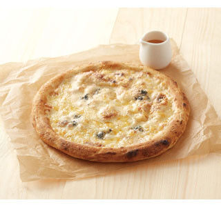 「クアトロ フォルマッジオ はちみつ添え(4種チーズのピッツァ)」(899円)は、ゴーダにモッツァレラ、ゴルゴンゾーラにパルメザンの4つのチーズを使用。はちみつをかけるとまろやかな味わいになるという。