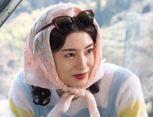 公開されたキャラクタービジュアルには、銀幕”スクリーン”の中で芝居をする園子の姿が映し出され、物悲し気な表情と眼差し印象的な1枚に。一方、同作の実際の撮影シーンとしては初公開となった場面写真は、女優・桂園子の日常の姿を捉えたもの。ストールを頭に巻き付けたスタイルは「真知子巻き」と呼ばれ、当時大ヒットした映画がきっかけで若い女性の間で大流行したスタイルで、スクリーンの中に生きる役の姿とはまた異なる、華やかで魅力的な姿が写し出された。