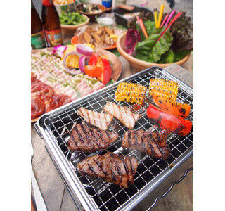 メニューは、肉を野菜で包んで食べるスタイルの「ハワイアン・ベジ・ラップ BBQセット」(1人2,700円 / 2名から注文可)を用意。1,000円をプラスすることで肉が食べ放題になる。