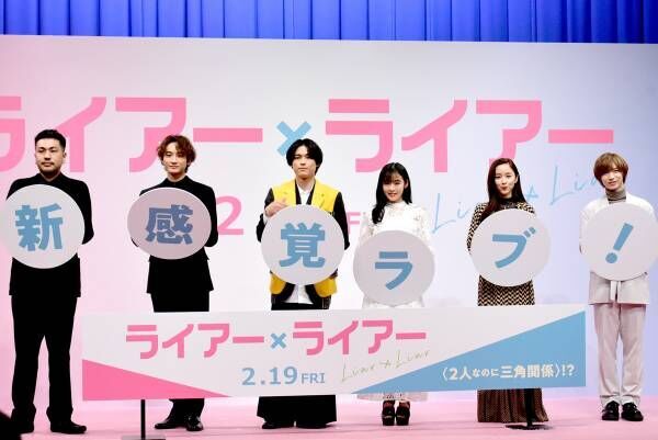 映画『ライアー×ライアー』(2月19日公開)の完成報告イベントが20日に都内で行われ、松村北斗(SixTONES)、森七菜、小関裕太、堀田真由、七五三掛龍也(Travis Japan/ジャニーズJr.)、耶雲哉治監督が登場した。