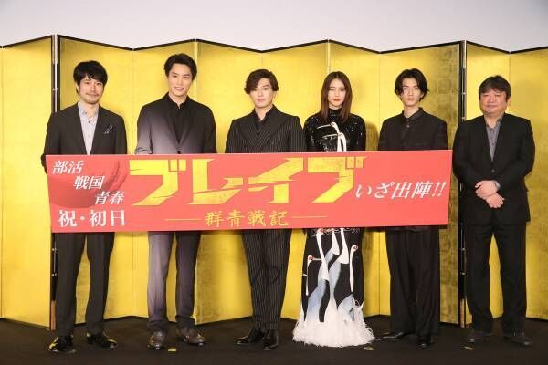 映画『ブレイブ -群青戦記-』(3月12日公開)の初日舞台挨拶が12日に都内で行われ、新田真剣佑、山崎紘菜、鈴木伸之(劇団EXILE)、渡邊圭祐、松山ケンイチ、本広克行監督が登場した。