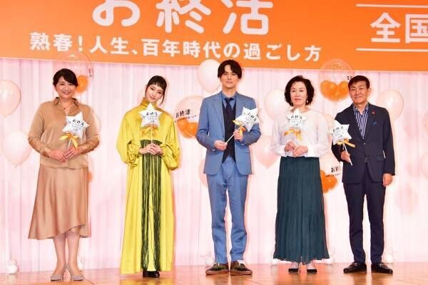 橋爪と高畑演じる熟年夫婦と終活フェアで出会い、彼らの終活をサポートする主人公を演じた水野は「めちゃくちゃ緊張しました。ずっと小さい頃から見てきたお2人だったので、すごく恐縮したしどういうお芝居を返したらいいのかと考えたら緊張しました」と当時の心境を明かし、「お2人に引き出してもらいましたし、カメラが回ってない時に高畑さんが僕みたいな無名の新人の生い立ちやこの作品に臨んでいる僕の熱い気持ちを涙を流して聞いてくださいました。財産になる時間でしたね」と感謝しきり。高畑は「橋爪さんが口を聞いてくれなかったので水野さんの半生を語れるぐらい聞きましたよ。水野さんのことは私に何でも聞いてください」と笑いを誘った。