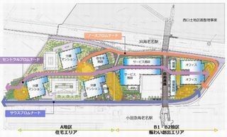 開発計画では、「沿線中核駅」にふさわしいまちづくりとして、「憩う・くらす・育む~ViNA GARDENS~」を開発コンセプトに、約3万5000平方メートルの敷地を「住宅エリア」と「賑わい創出エリア」の2つのゾーンに分けて、街づくりを進めていく。