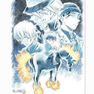 ティザービジュアルは、原作・青山剛昌氏の描き下ろし。黒い馬にまたがった江戸川コナン、FBI捜査官・赤井秀一、公安警察・安室透、そしてコナン=工藤新一の身体を小さくさせた張本人である黒ずくめの組織構成員・ジンの姿が描かれており、4者の思惑が交錯する決戦を示唆している。