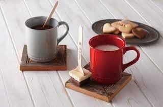 今回はル・クルーゼ ジャポン初の試みとして、ストーンウェアとスウィーツのセット企画を行った。同ギフトセットはマグカップに、オランダ発のチョコレートブランド「チョコレートカンパニー」の主力アイテムである「ホットチョコスプーン」がセットになっている。